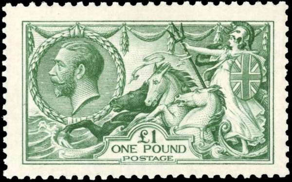 GB: 1913 Waterlow £1 dull blue-green, mint unmounted og