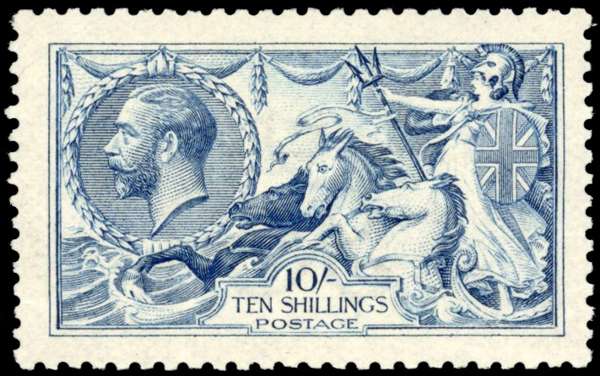 1915 10s blue, mint unmounted o.g. Very fine with good colour. SG 412 cat £3250