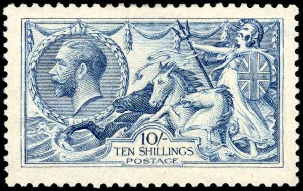 1915 10s blue, mint large part o.g. fine example with good centering. SG 412 cat £2500