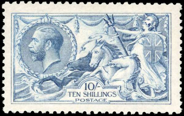 GB: 1915 ‘Seahorse’ De La Rue 10s pale blue, mint unmounted og., well centred with lovely colour