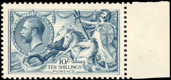 1918-19 10s dull grey-blue, mint unmounted o.g. right hand marginal. Fine. SG 417 cat £850