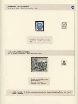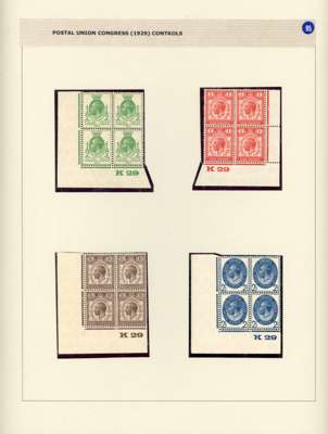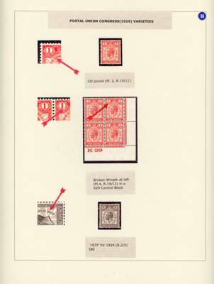 1929 Postal Union Congress mostly mint selection arranged on album pages including 1d variety ‘CO’ joined, control block of four with ‘BROKEN WREATH’', 1½d variety ‘1829’ for ‘1929’ with RPS Certificate (1985), £1 black and used 2½d ‘WATERMARK INVERTED’ with RPS Certificate (1995). Mostly good to fine. (35). SG 434/8