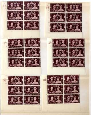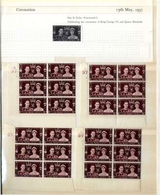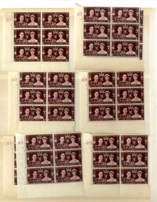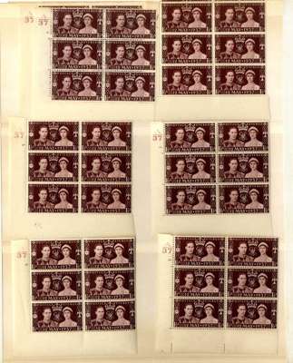 1937 1½d Coronation Cylinder blocks mint, complete per Specialised listing except for 4RC, 8 dot, 10RC, 19RC, 24 dot and 27 no dot. Those checked are unmounted, condition a little varied with a few toned along the top from poor storage, but most are good. Not easy to assemble. SG 461.