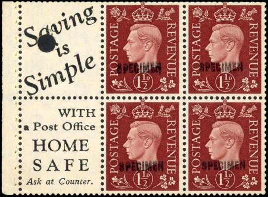 GB 1937 1½d red-brown booklet pane SPECIMEN