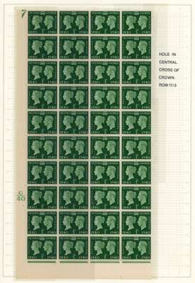 1940 ½d Centenary lower left corner block of forty, Cylinder 1 dot, R17/3 ‘hole in Crown’. Unmounted o.g., some minor selvedge creasing otherwise fine. SG 479, QCom2a, £150