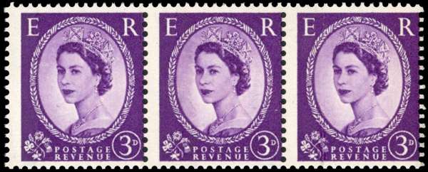 Great Britain 1959 SG 575var 1959 3d Deep violet “Dollis Hill Phosphor Trial“ strip of 3