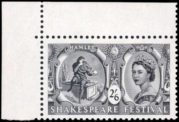 GB: 1964 2s6d Shakespeare jet-black shade, top left hand corner marginal example of this rare shade. BPA Certificate