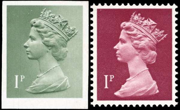 GB 1973 1p imperforate Harrison Colour Trial Proof in olive-grey SG X844var