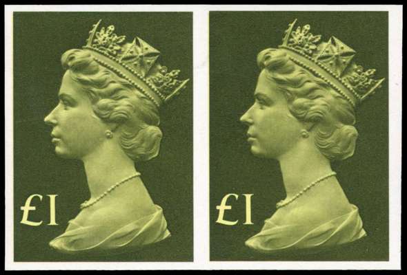 1977-87 £1 bright yellow-green and blackish olive imperforate horizontal pair, mint unmounted o.g., fine and scarce. SG 1026a cat £1700
