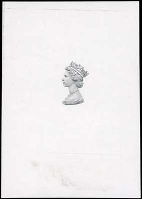 2000 (c.) Larger size Machin head recess printed die proof in black on thick glazed paper (91x130mm), fine; also two plastic acetates of 1995 Sir Rowland Hill commemorative issue for the 19p (280x225mm) and 25p (290x165) values. (4)