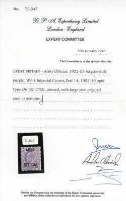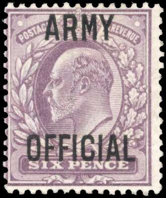 Army OFFICIAL. 1903 6d pale dull purple, mint, large part o.g. A fine example of this scarce departmental issue. BPA Cert (2010), SG O52 cat £1,800.