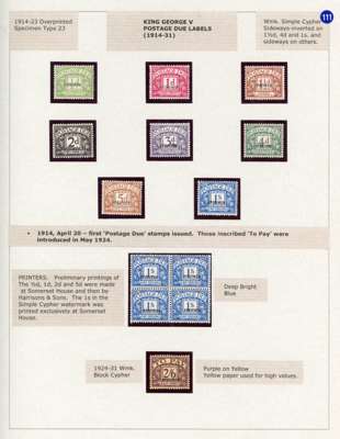 POSTAGE DUES: 1914-23 ½d to 1s set of eight, additional 1s block of four and 1924-31 2s6d mint selection all overprinted ‘SPECIMEN’ type 23 with large part o.g.; also four underpaid postcards/envelopes with different values . Generally good to fine. SG D1-8a, D18