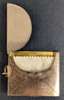 c. 1894 London 9ct stamp case in the form of an envelope, the front bearing a tiny enamelled 1881 GB 1d. lilac "cancelled" by a black enamel London duplex cancel dated Feb. 14 1894 and addressed to Johannesburg, the top with a single pivot swing-top lid and a chain attachment at side; fine and very rare, this being the first of this type we have seen in gold.