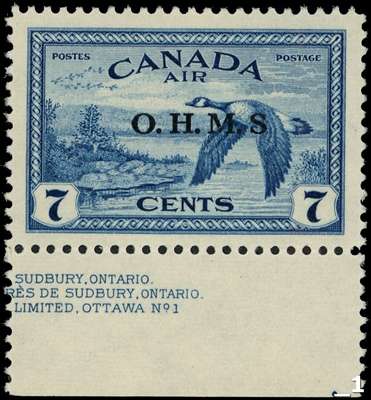 Officials. 1949 7c blue lower marginal with part imprint, R10/2 LLP missing stop after ‘S’, beautifully centred. SG O171a, £275