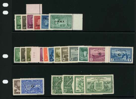 1937-52 mint collection (193) on Hagner sheets, unmounted o.g. unless stated, with 1937 to 50c plus coils and Air; 1942 to 50c plus coils and panes, and later definitives to $1. Officials with SG O126a-130, 148, 153-8, 162-71 (this set hinged), 172-7, 178-192