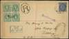 Postal Stationery. 1913 2½d registered Huber envelope with added ½d block of four, abbreviated Georgetown registration etiquette, ‘R’ in oval and Kingston transit on the front; Philadelphia and Pittsburgh datestamps on reverse. The envelope with slight discolouration and central fold (tiny split at top). Ex Cammarata