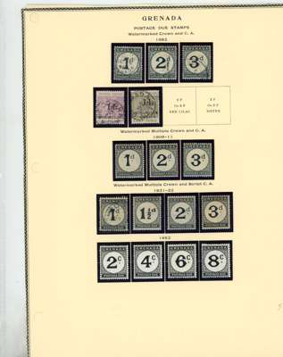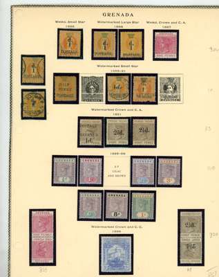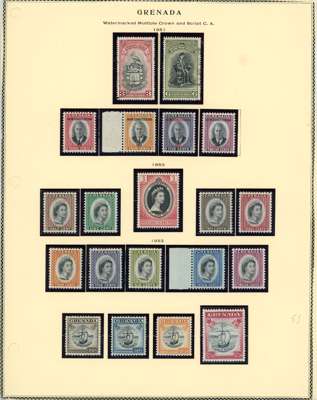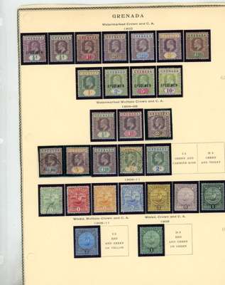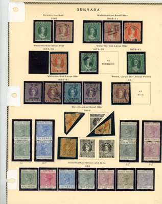 QV to QEII mint and used collection on pages, including: pre-stamp entries, with 1787 part entire to London, bearing Grenada Crown circular h/s, 1785 entire to England bearing Grenada Crowned circular h/s, backstamped by Bishop Arrival marks, 1866 cover to London franked 6d rose (pair) tied by A15 numeral, 1863-71 values to 6d, some biscets, tete-beche pairs, 1883 Wmk CA set to 1/-, surcharges, KEVII 1902 set with 2/-.5/- & 10/- optd SPECIMEN, 1934 set, KGVI and QEII, generally fair to fine condition.