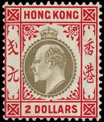HONG KONG: 1905 $2 slate and scarlet, chalk-surfaced paper, fine o.g. SG 87a...