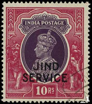 Officials. 1942 10r JIND SERVICE, used with part Sangrur hooded circle cancel. BPA Certificate (2018). Rare. SG O86, £1800