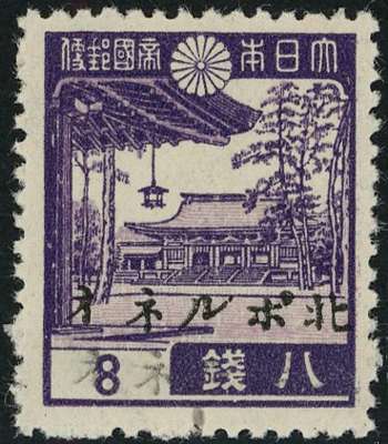 Japanese Occupation. 1944 8s violet with overprint double, large part original gum. BPA Certificate (2011). SG 41a, £350