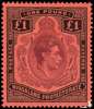 1938-44 £1 purple and black on red paper, large part o.g. with R4/5 serif on ‘G’. Fine but for an inconsequential bend. SG 143c, £1100