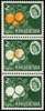 1966 Harrisons printing 2d vertical strip of three showing ERROR YELLOW-ORANGE OMITTED and partial omission in centre, fine large part o.g. scarce. SG 375a £3,500