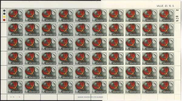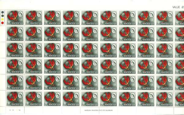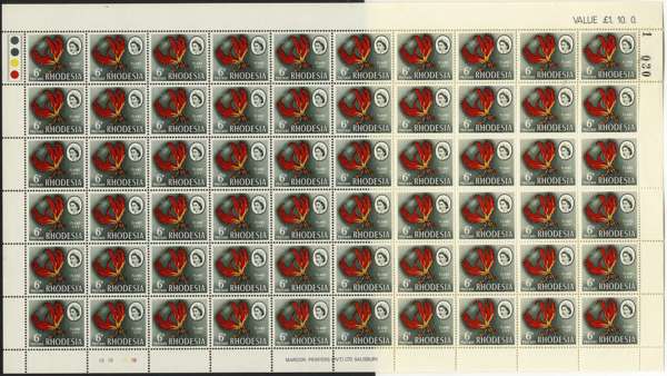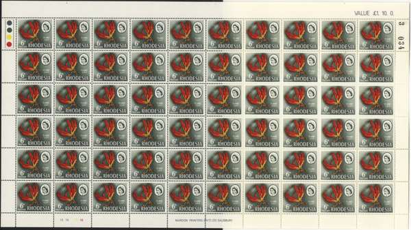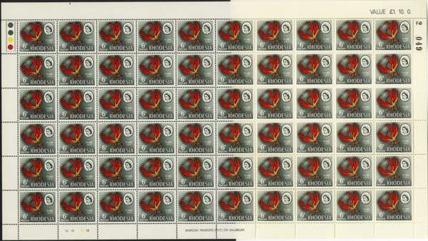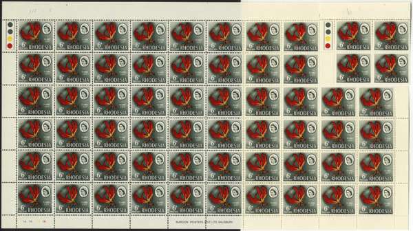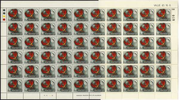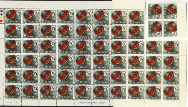 Rhodesia 1966 Mardon Trial printing 6d white and supreme chromo sheets/blocks SG...
