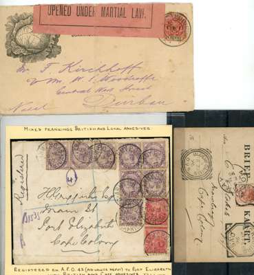 BOER WAR: selection of covers including cover to Durban with “OPENED UNDER MARTIAL LAW” censor label,