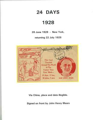 USA 1928 John Henry Mears Round the World Flight printed post card,...