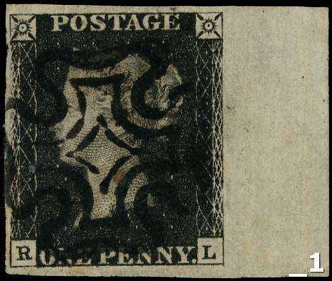GB: 1840 1d black Plate 5 (RL) four margin, right hand marginal example, cancelled crisp central black MC