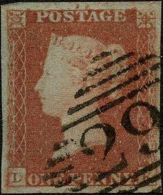 1841 1d red brown Plate 75 (LK), four good margins showing "Union Jack re-entry", neatly cancelled by a part Irish numeral leaving a clear profile and upper corner squares showing the re-entry clear. Very fine and scarce. SG 8d