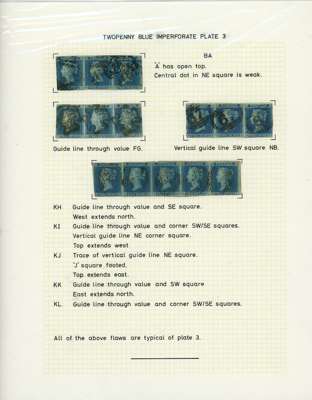 1841 2d blue, Plate 3, neatly presented selection comprising strips of three (3, AA-AC, FF-FH, NB-ND), strip of five (KH-KL), two entires franked with a pair (FG-FH) and a strip of three (AA-AC) both addressed to Edinburgh; also 1857 entre franked by 1854-57 perf 14 pair (FK-FL) to Hereford. Condition mixed. (7 items)