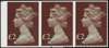 Great Britain 1977-87 £2 light-emerald and purple-brown, left marginal strip of three, partly perforated