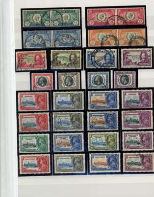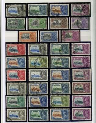 1935 Silver Jubilee Omnibus used collection neatly presented in blue stock book, complete (excluding Egypt seal), plus Bermuda postcards (2), covers of Jamaica (2), St Kitts and St Lucia, condition good to fine used. (254).