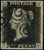 1840 1d black Plate 8 (FG), four good to large margins, struck by crisp black MC, fine. SG 2