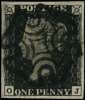 1840 1d black, plate 10 (OI showing the ‘J’ flaw,), four large even margins, neatly cancelled by crisp and virtually complete black Maltese Cross. Very fine.. SG Spec AS66g