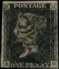 1840 1d black Plate 11 (EG) touching to good margins, struck by black MC, a collectable example of this scarce plate. SG 2