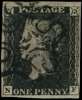 1840 1d Greyish black Pl.11. Very fine used close to large four margin example lettered NF, neatly cancelled by a lovely strike of a black London No.2 MC. Spec. AS72wb. 1967 BPA Cert. Ex Seymour.