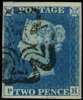 1840 2d blue, plate 1 (PH), good to large margins, neatly cancelled