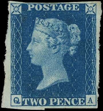 1840 2d blue, plate 2 (QA), clear to large margins, showing ‘DOUBLE LETTER OF Q’, unused without gum; vertical pressed vertical crease nevertheless of fine appearance. SG Spec DS8d
