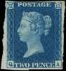1840 2d blue, plate 2 (QA), clear to large margins, unused