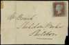 1847 part entire letter, to Shildon, franked by 1d red-brown Plate 69 (CA), touching to large margins (roughly separated by Postal clerk) tied by 1844 type ‘30’ numeral for Bishop Auckland in violet, backstamped by Bishop Auckland mark for NO 24, piece partly separated with sensible hinge reinforcement, an small scissor cut to ‘A’ square, otherwise fine, very scarce. BPA Certificate (2023), SG 8; Spec BS59xe priced at £7000 on cover.