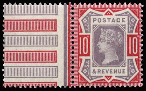 1890 10d Dull purple & deep dull carmine. Very fine unmounted o.g. left hand marginal example of this difficult shade. Copy of 2017 RPS of a block of four from which this single was taken. Spec. K39(2).