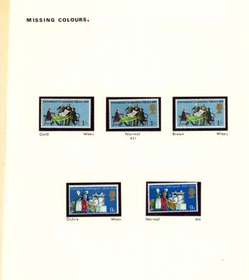 GB: 1970 General Anniversaries 9d ochre omitted, 1s gold (Queen's head) omitted and 1s brown omitted