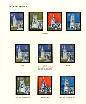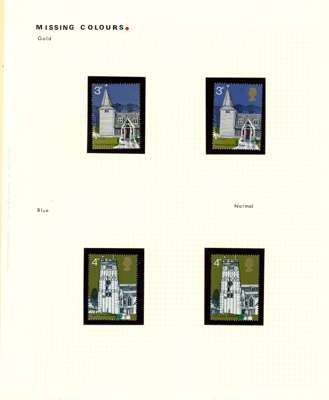 GB: 1971 Village Churches 3p gold (Queen’s head) omitted and 4p violet-blue omitted, offered with normal stamps