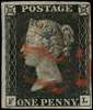 1d grey black Plate 1a (FL) four good to large margins, nearly struck by red MC, showing moderate plate wear, fine. RPSL Certificate (2000) SG 3