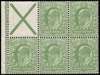 1911 ½d Dull yellow green (Booklet pane, Wmk. Upright). Very fine unmounted o.g. booklet pane of five stamps plus a St Andrews Cross label printed by Harrison & Sons, perforation type E. Spec. MB4.