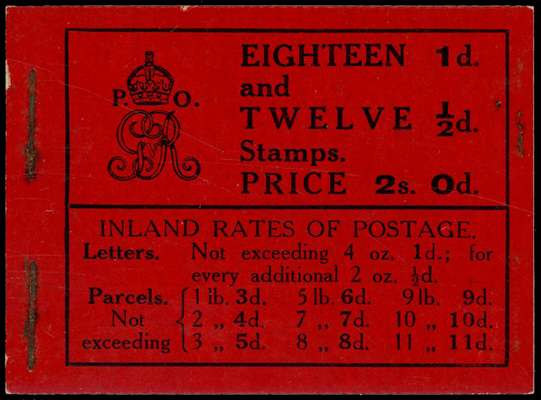 1912 2/- Booklet, mostly good perfs, with ½d panes inverted, fine example of this early and difficult KGV booklet. SG BB3