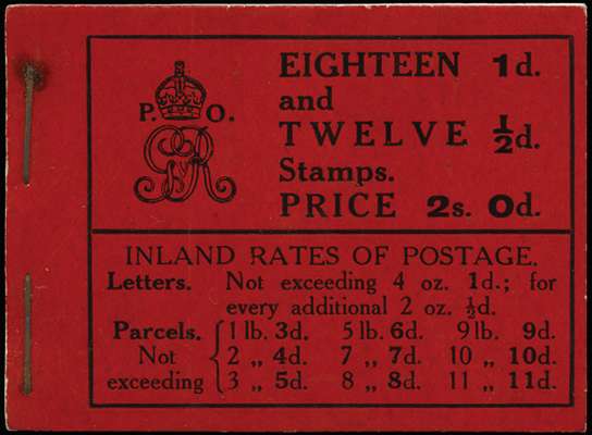 1912 2s0d Booklet (Die 1b, Wmk. Simple Cypher Edition No.13). Very fine and fresh example of this difficult early George V booklet.