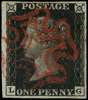 1840 1d intense black Plate 2 (LG), four good to large margins, struck by crisp red MC, SG 1